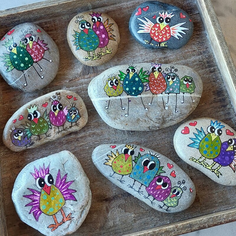 Schon ganz früher war ich ein Kind, welches Steine im Hosensack nach Hause getragen hat. Ich habe diese angemalt, verschenkt und Freude bereitet. Dies ist bis heute an mir hängen geblieben. Meine Kreationen werden immer vielfältiger, ideenreicher und täglich anders. Alles sind Unikate und die Kreationen sind ein Herzensprojekt geworden, welches mich zum Glück nicht mehr loslässt. Seit einigen Jahren bin ich auch an Ausstellungen unterwegs und freue mich mein Hobby zu teilen. Gerne biete ich auch Kurse bei mir zu Hause an.